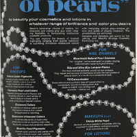 The most brilliant synthetic pearls for nail enamels. They equal and surpass the brilliance of even the best grades of natural pearl, at a much more economical cost.