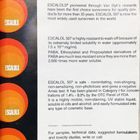 ESCALOLS* pioneered through Van Dyk’s research have been the first choice sunscreens for quality products for more than 35 years. ESCALOL 507 is now the most widely used sunscreen in the world.