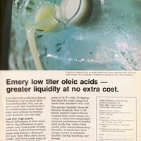 Low titer oleic acids from Emery Industries cost no more than standard grades. You can improve your oleic-based product by substituting a more liquid oleic acid without increasing your material cost one cent.