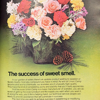 Union Camp was involved in many different aspects of the chemical industry, from paper production to fragrences to food. Acquired in 1982, the same year this ad was published, Union Camp’s subsidiary, Bush Boake Allen, was one of the world’s leading producers of aroma chemicals and compounders of flavors and fragrances.