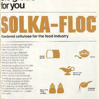 This advertisment is for Solka-Floc which is a powdered cellulose. This ad stood out to me because cellolose is a compount that I have not look into or seen a whole lot of advertisements for so I was intrigued to know a bit more about it. I also found it interesting that the ad highlighted that it has a “low caloric content” and “high fiber”. This helps show trends during this time which are very similar to today where people are specifically looking for foods that are low in calories and also high in fiber.