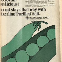 This advertisment is for salt. The company Sterling Salt is really advertising that their product is pure and uniform. This brings up interesting conversations of how we value food and food processing that creates uniform and constant products that have a specific visual to them that attracts us as the consumers. I am intrigued to look more into the line “never toughens delicate vegatables”. This wasn’t something I was aware of was a concern surrounding salt and vegatables.