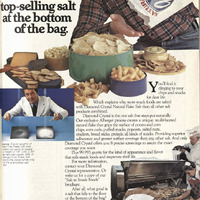This advertisement emphasizes the importance of salt’s performance in food technology. The ad shows the versatility of the salt by mentioning/showing the snacks that could be salted. Appearance and flavor are mentioned to be enhanced by this salt, which are values coveted in 1983 food technology. The advertisement also highlights how their salt is better than their competitors proven by science.