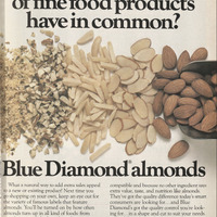 This ad emphasizes the versatility of almonds. Nutrition is also mentioned, which is not unlike other food technology ads from 1983 that highlight dieting and weight-loss.