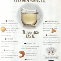 This ad emphasizes several reasons soybean oil is better than others for manufacturers. Highlights American patriotism and healthy diet.