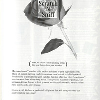 A black and white image of a rose with a transparent box with the words ‘Scratch N’ Sniff’.
