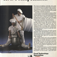 There is an element of comedy to the photo of the two men. This is one of the first 1983 Food Technology advertisements I have seen in which it is critiquing the Food Technology industry for how consumers’ health is compromised. Standardization, sanitation, and reputable staffing are both emphasized.