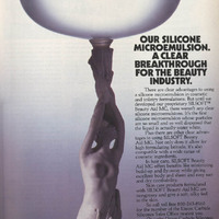 Unlike a previous Union Carbide ad in this journal, this ad only focuses on one product. What I find particularly interesting is the ad’s theme on clearness. This theme is reflected in the ad’s text, which uses words like clear, and the visual itself. Not only is SILSOFT Beauty Aid MG shown as clear as water, but it is also held up by a sculpture. Together, it looks like a work of art, which is likely intentional to reinforce how perfect (and therefore desirable) the product is.