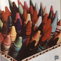 Alt Text: An advertisement had a closed-up image that many colorful crayons standing upright inside a corrugated cardboard box. The crayons stand very tight and close to each other and it’s clear to see the texture of the box especially at the bottom.