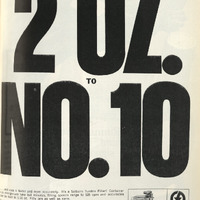 Alt Text: A magazine advertisement, and the main object is the large black text, to emphasize the different size and volume for the cans. At the bottom, there was a descriptive text and a small picture of a industrial filling machine and the Solbern company name and logo.