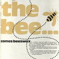 Comments: Harvesting natural beeswax for commercial production seems out of place compared to all the other advertisements in these volumes. This is a main selling point for the company, coupled with their expansive years of experience. I wonder how they ensure uniformity with their product and how the production works. I think it is also notable that they insist it will never dissappear from the market when only a few decades later people fear the honeybee species decline due to climate change.
