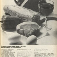 Comments: The advertisement highlights Sonneborn’s vast food applications while maintaining no color, odor or taste. Food manufacturers prefer additives that leave no sensory trace beyond their function, enabling the food product to appear untouched. This reflects the industry’s value of preserving a perception of naturalness in food products. Similarly, Sonneborn’s applications for protective coatings and paper-treatment are used to preserve a “fresh” appearance in foods with long shelf lives, further demonstrating the food industry’s value of durability while maintaining the illusion of freshness. To add, the text’s discussion of new ideas and solving product problems positions the company as a hub of innovation and creativity, desirable traits that food manufacturers may look for in partner companies.