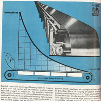 Sandvik continuous cooling and freezing systems feature a solid steel belt moving with its underside in direct contact with coolant and refrigerant. The excellent thermal conductivity of the thin steel belt provides continuous processing efficiency for many product including hamburgers, shrimp, pie fillings, vegetables, ice cream and candy. The Sandvik system can be engineered with controlled temperature zones along the length of the belt to provide the time-temperature profile specifically suited to the product. Blast freezing air cooling from above can also be provided. Since no scraping or agitation is required product quality is preserved. For air blast systems perforated belts can alo be supplied. Continuous trouble-free operation assures high production rates. Easy cleanability reduces downtime between different runs. For testing your product, Sandvik has a modern test center at Fair Lawn, N.J. fully equipped to obtain design and production data. Contact your nearest Sandvik office.