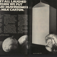 They broke up over the cranberry sauce. Roared over the marinated herring. And went into stitching when we put it in potato salad. But it’s hard to laugh off the low cost of International Paper Pure-Pak milk cartons. Only a nickel a gallon container. Even shipping charges are easier to take, because Pure-Paks are up to 2 pounds lighter than glass. Lighter than plastic or metal containers, too. And because a Pure-Pak is flat until filled, it takes up 90% less space when your plant storage room. When filled it still takes up 20%-40% less shelf space than round packages. No wonder so many products are finding their way into International Paper Pure-Paks. Here’s just a sampling: sugar, syrups, sauces, soups, fruit slices, butter, cheese, chow mein, frozen eggs, plant foods, detergents, bb’s and practically all epsom salts sold. What about your product? Is it suited for a Pure-Pak? Just ask Jock McNair, our New Product Specialist. Fill him in on things like shelf life. Is it frozen? Dry? What size does it come in? (We can handle half-pints, pints, quarts, half-gallons, gallons and two gallons.) Is aroma important? (Special foil-lined Pure-Paks seal in food fragrances.) Should we consider hot filling? Give Jock all the dope. He’ll tell you– in all professional candor– whether or not we can put you in Pure-Pak. Send all the product specifications (or the prodcut itself) to Jock’s attention at the International Paper Company, 220 East 42nd Street, N.Y.C., N.Y. 10017. Please don’t hesitate to tell us about your product, no matter what it is. We promise not to laugh. The International Paper Company, where good ideas grow on trees.