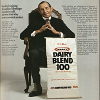 Now they’re enjoying the combined advantages of nonfat dry milk and sweet dried whey in one economical product. Dairy Blend 100 from Kraft, is half nonfat dry milk, half sweet whey. Use it in any formula that calls for dairy solids. Its whey content will actually improve a variety of food products, like dry mixes and frozen goods, in many ways. For example, you’ll notice an improvement in the flavor of your foods, because whey contains no flavor-masking casein, but does contain an abundance of lactose, a natural enhancer of flavors. The whey proteins in Dairy Blend 100 will help keep doughs tender and moist, and so extend the shelf life of your product. The whey also accounts for richer, more even browning and for smoother texture in frozen cakes, frozen meat pies, and brown ‘n serve rolls. Dairy Blend 100 is also easier to handle than nonfat milk solids alone. It is not dusty and it disperses easilyily. Of course, it is significantly more economical. If you think it’s time you joined the switch to Dairy Blend 100 in your food products, see your Kraft man.