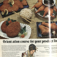The crisp, crunchy texture, delicate flavor, and rich, golden color of Japanese-Style Bread Crumbs contribute Oriental splendor to “heat-and-serve” products as well as “bread-and-freeze” pack items. yet this unique breader is produced in the United States by an exclusive Modern Maid process.