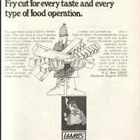 You just have to be a Lamb’s distributor. Then you have at your fingertips the most popular cuts for eveyr segment of your market - plus delicious new cuts to bring in new trade. Lamb’s shoestring’s, the longest, biggest yield shoestrings in the business… more-savings-per-pound Hi Fries… old fashioned kitchen cut Steak House fries… crinkle cut Concertinas… plus a host of others. All processed the unique Lamb way from top quality Russet-Burbank potatoes, specially conditioned and cut to outshine any other French Fries anywhere. If you’d like to taste new profit with Lamb’s, write us today.