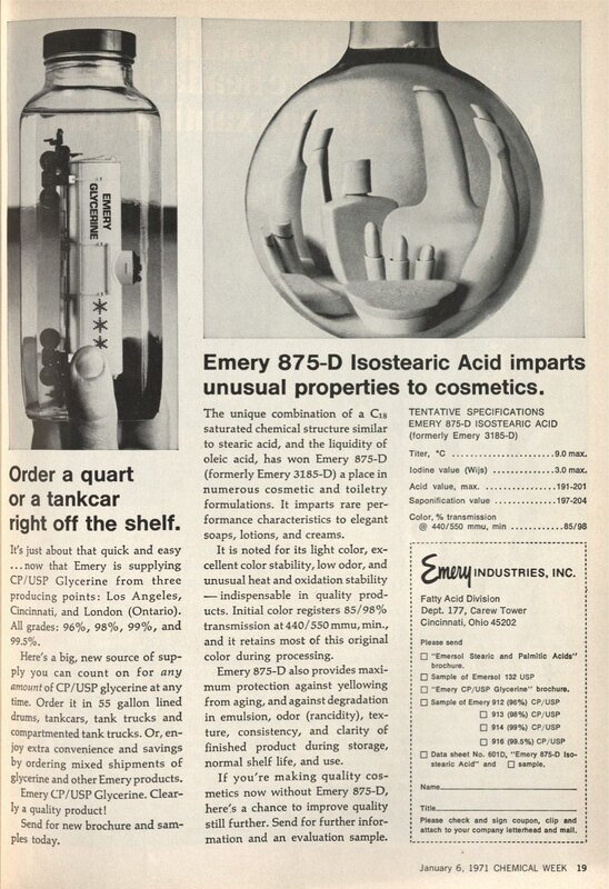 Emery 875-D Isostearic Acid imparts unusual properties to cosmetics.